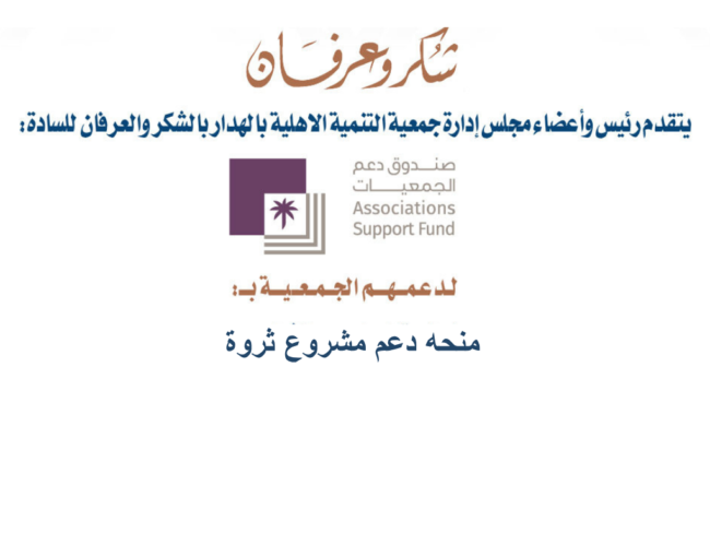 شكر وعرفان | صندوق دعم الجمعيات