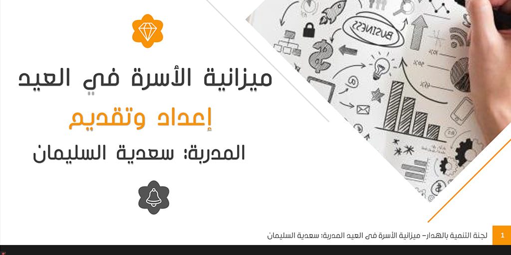 نفذت لجنة التنمية الاجتماعية الأهلية بالهدار -القسم النسائي- ورشة عمل (ميزانية الأسرة في العيد) ضمن برنامج (الأسرة المتوازنة) قدمتها المدربة أ. سعدية السليمان في يوم السبت الموافق 12-09-1442هـ عبر منصة الزوم واستفاد من الدورة (55) من الأمهات والفتيات.