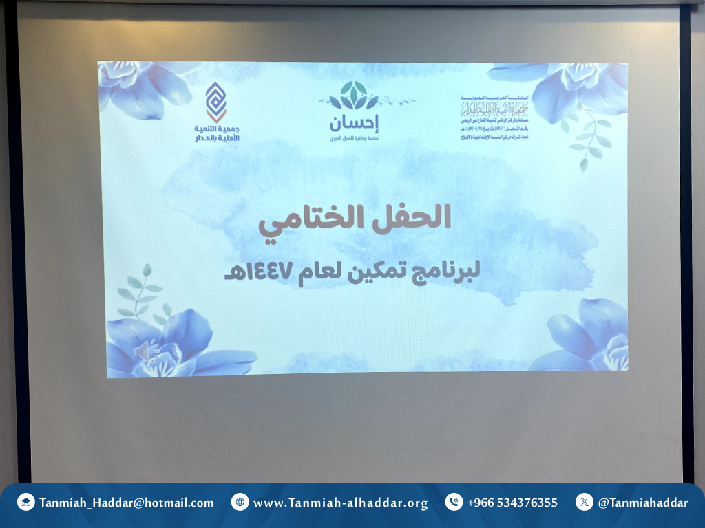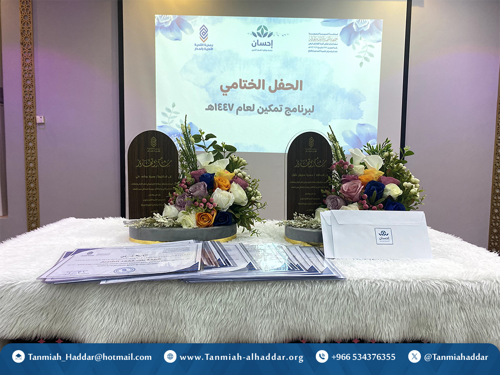 اختتمت جمعية التنمية الأهلية بالهدار برنامج (تمكين الأول) لعام 2025م والذي يهدف إلى تأهيل (70) من المطلقات والأرامل وتمكينهن لسوق العمل، من خلال تقديم دورات تدريبية تخصصية متنوعة، قدمها نخبة من المدربات المتميزات في المجال، وبدعم من المنصة الوطنية للعمل الخيري (إحسان)، وفي ختام الحفل تم تكريم المشاركات في البرنامج.