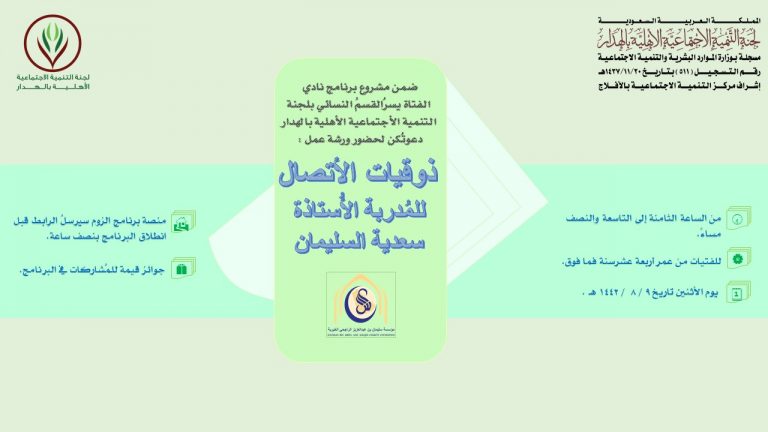 نفذت لجنة التنمية الاجتماعية الأهلية بالهدار -القسم النسائي- ورشة عمل (ذوقيات الاتصال) ضمن برنامج (نادي الفتاة) التي قدمتها المدربة أ.…